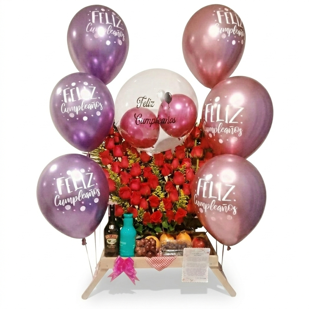 Sorprende y deleita a tus seres queridos con nuestro encantador Regalo Mágico Arco de Flores con Baileys , un conjunto armonioso que combina la elegancia de las rosas, la frescura de las frutas, la diversión de los globos y la ternura de un peluche. Este arreglo es perfecto para expresar tus sentimientos de amor, aprecio y celebración de una manera única y mágica.